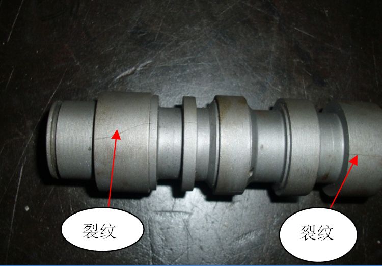經(jīng)磁粉探傷檢查裂紋發(fā)生位置,一是在零件外圓部位,呈細(xì)條狀或細(xì)網(wǎng)狀分布,如圖2a所示;二是在臺(tái)階溝槽處,呈縱向裂紋分布,裂紋數(shù)量較多,如圖2b所示。