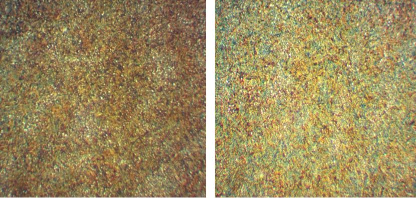 其具體過(guò)程如下:淬火溫度仍選用(850±10)℃,加熱設(shè)備選用的鹽浴爐,冷卻用32號(hào)機(jī)械油,首批試驗(yàn)68件,淬火過(guò)程不變,但零件從油中取出后,分三種方案進(jìn)行處理:20件100℃開(kāi)水煮1h,取出后待零件表面預(yù)冷到60℃左右即投入水中冷卻,使零件溫度快速降到室溫與其余產(chǎn)品一同進(jìn)行冷處理;20件180℃油爐煮油1h,取出后待零件表面預(yù)冷到60℃左右投入水中冷卻,使零件溫度快速降到室溫與其余產(chǎn)品一同進(jìn)行冷處理;剩余零件28件按原工藝進(jìn)行,即在鐵板上攤開(kāi)自然冷卻到室溫,該過(guò)程2~2.5h,待自然冷卻的零件達(dá)到室溫后(用紅外線點(diǎn)溫計(jì)測(cè)量),將幾種方案處理的零件分別作好標(biāo)識(shí)后放入保溫桶底部,倒入干冰和酒精(酒精必須淹沒(méi)零件),冷處理1h。冷處理后將零件取出攤開(kāi)在空氣中自然回升到室溫后再進(jìn)入油爐回火,這個(gè)過(guò)程3~4h,回火后噴砂、磁粉探傷檢查裂紋,并對(duì)每種工藝方案破試零件檢測(cè)金相組織。
