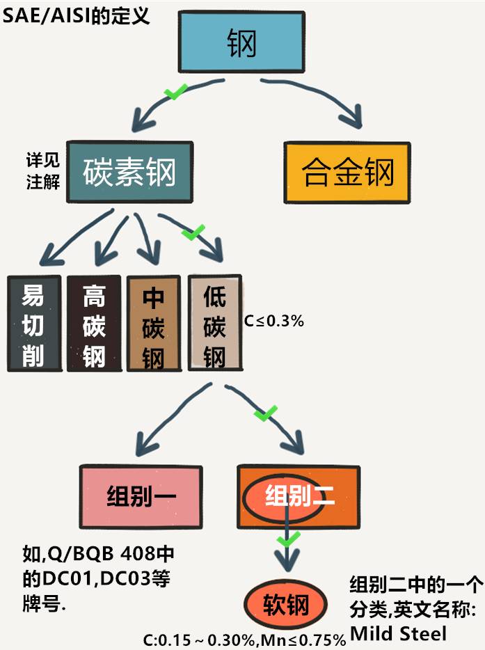 軟鋼(Mild Steel)歸屬于第二組別中的一個分類,也即指含碳量0.15%~0.30%,Mn含量不大于0.75%的這一個分類。